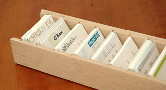 | ・株式会社倉田裕之/建築・計画事務所 デザインの「マルゲリータ」シリーズ。 ・全長60センチ。1755枚(※)入る名刺入れ。(※当店調べ) |