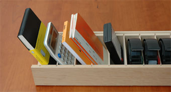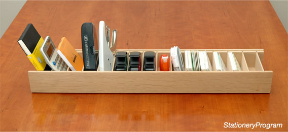 倉田様「キモ入り」の特大名刺入れは、すべてのパーティションに名刺が収まった姿も美しいのでありますが、私は多くの文房具がスポスポと入り、片づいてしまうことを発見。モールスキンやら電卓やら何でも斜めになって並んでいる様子が楽しいのであります。筆記具以外はみんなココに並べてみよう? | ||||