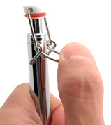 伝えたいテーマはキッチリと具現化し、それ以外の部分はいたってシンプルな形に。このメリハリが私たちの「使ってみたい気持ち」を呼び起こします。クロームシルバーとサテンシルバーの両モデルは金属パーツで作られており、各部品の加工や勘合も良くできていて、安直なギフト用品とは一線を画しています。 このボールペンで、楽しいお話のきっかけを作ってみてください。 |