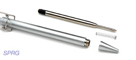 | 替芯の交換は口金(ペンの先端)を回して外すだけ。 全国で入手可能なパーカータイプの替芯を採用。 標準で備わっているのは油性ボールペン。 黒インクのM字(中字)です。 |