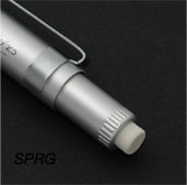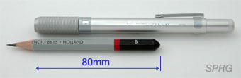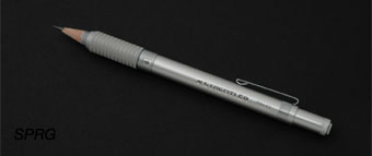 比較的高価なペンシルホルダーです。ペンシルエクステンダーなどとも呼ばれます。要は、鉛筆補助軸です。それって、小学校前の文具屋さんに売っていた素朴な製品を思い浮かべますが、どうしたことでしょう、これは2千円近くもします。シャープペンシルと同程度の全長・消しゴムやクリップの装備・丁寧な作り等から考えて、短かくなってしまった鉛筆を「鉛筆以上のものに復活させる」、従来のペンシルホルダーとは違う、新ジャンルの製品かもしれません。 まず重要な、鉛筆を固定する部分はしっかりと作られており、価格に見合う、安定した書き心地です。 グリップ部分はローレット(=すべり止めのために金属をギザギザに加工)仕上げ。個人的には本来、ローレットが好きではないのですが、本製品の場合、ギザギザを極めて細かく刻むことで、手指への違和感を最小限にしています。じっさい、これなら私にも許容の範囲内。愛用しています。グリップのすぐ上側には、鉛筆の芯硬度を示すマーカーがあります。 |