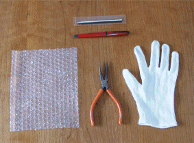 ボールペン、「クロスバー」、そして写真の用具をそろえます。