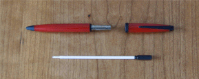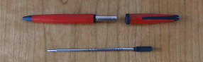 ボールペンをふたつに外し、替芯を回して取り出します。
