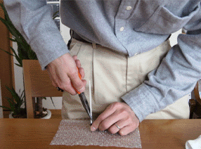 替芯の金属側に4つ折りにしたエアキャップを巻き、手でしっかりと持ちます。